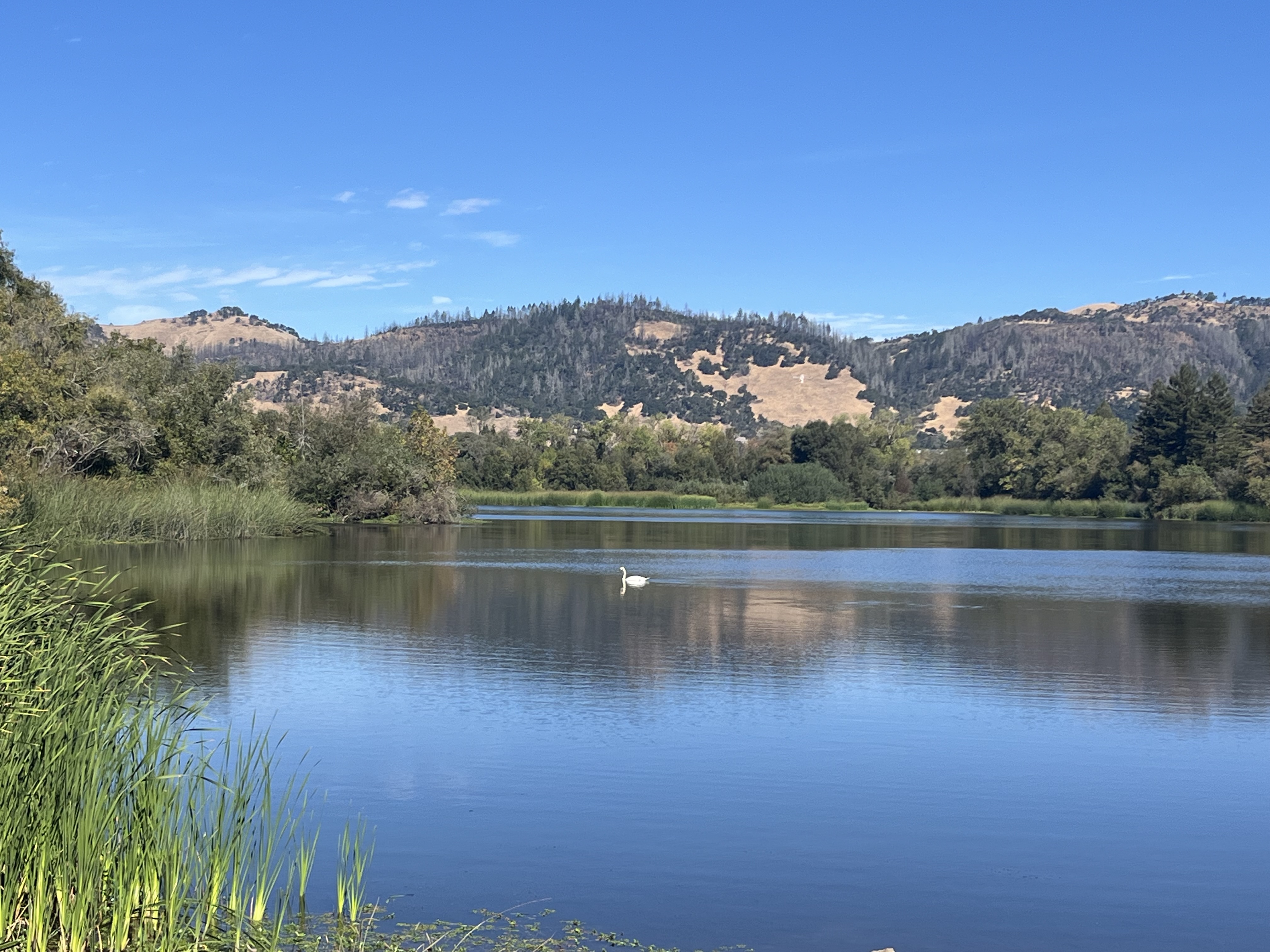 Spring Lake is a beautiful 320-acre regional park in Sonoma County where leashed dogs are welcome (note: the adjacent Trione-Annadel State Park, which locals refer to as simply “Annadel,” prohibits dogs entirely). One of the highlights for dog owners is the Spring Lake Loop Trail, a 2.3-mile paved path that circles the lake. This scenic trail provides views of the water, trees, and seasonal foliage and offers both sun and shade, making it a perfect outing for both you and your pup. It’s very popular with dog walkers, runners, cyclists and families. You can either walk into the park or drive and park in one of the parking lots. Parking is $8 during the fall/winer/spring season and $10 in the summer. Download a map here.